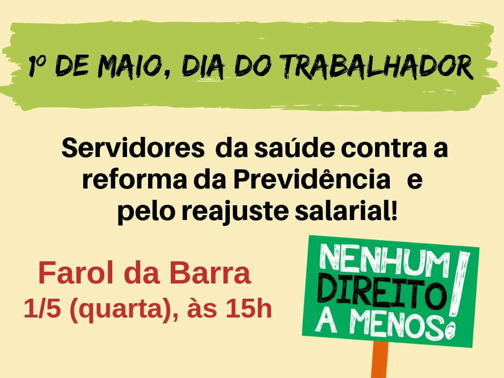 DESTAQUES 1º de maio: Servidores da saúde contra reforma da Previdência e pelo reajuste salarial 30/04/2019 por ascom Compartilhar: Share on: 0