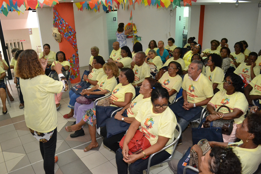 “A partir dos 45 anos de idade, o adulto começa a ter uma redução da renovação celular e, do ponto de vista nutricional, começamos a sentir alterações gastrointestinais importantes como a redução de apetite e do paladar, dentre outros sintomas”, alertou. Durante a apresentação, a nutricionista e diretora da entidade também tirou diversas dúvidas sobre alimentação e saúde.“Atividades como esta são muito positivas e importantes porque ocupam as nossas cabeças com ideias. Mostra que podemos produzir em todas as fases de nossas vidas. Espero que todos nós consigamos sair daqui mais fortalecidos”, ressaltou a diretora da entidade e vereadora de Salvador, Aladilce Souza, que conclamou os aposentados para maior participação ativa na luta em defesa do Sistema Único de Saúde (SUS).