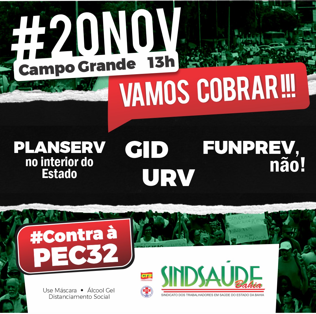 20 de novembro será marcado por ato em defesa do reajuste salarial e contra a PEC32.
