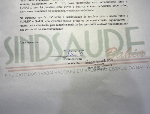 SindSaúdeBa cobra os 10% CET dos aposentados.