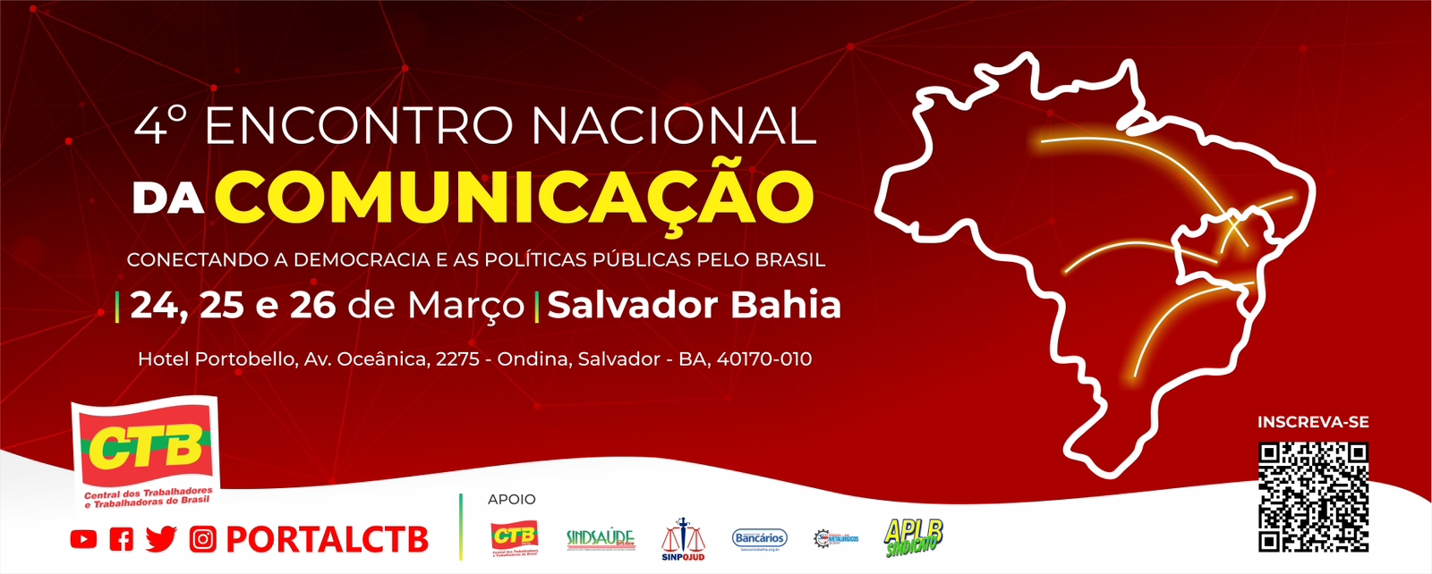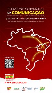O 4º Encontro Nacional de Comunicação da Central dos Trabalhadores e Trabalhadoras do Brasil (CTB) será realizado entre os dias 24 e 26 de março, no Hotel Portobello, em Ondina, na orla de Salvador.