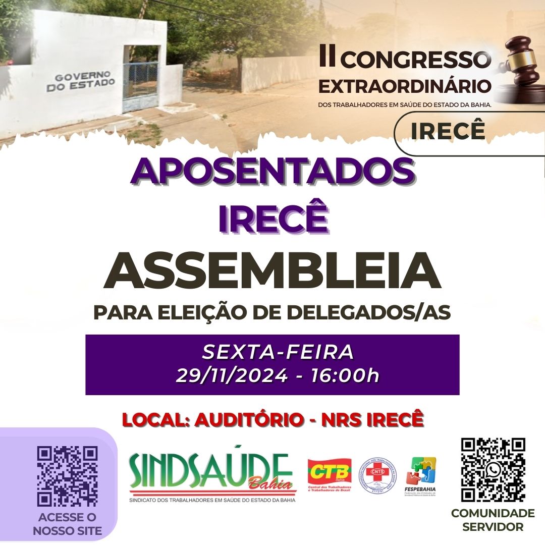 APOSENTADOS IRECÊ – ASSEMBLEIA DE RETIRADA DE DELEGADOS – 2º CONGRESSO EXTRAORDINÁRIO DOS TRABALHADORES EM SAÚDE DO ESTADO DA BAHIA