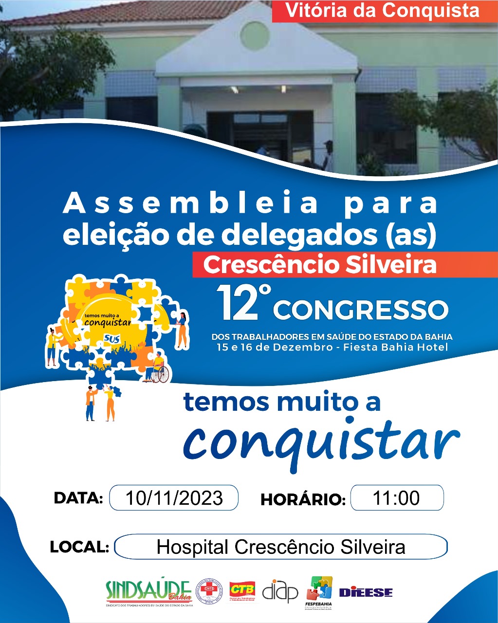 Assembleia para retirada de delegados (as) no Hospital Crescêncio Silveira em Vitória da Conquista
