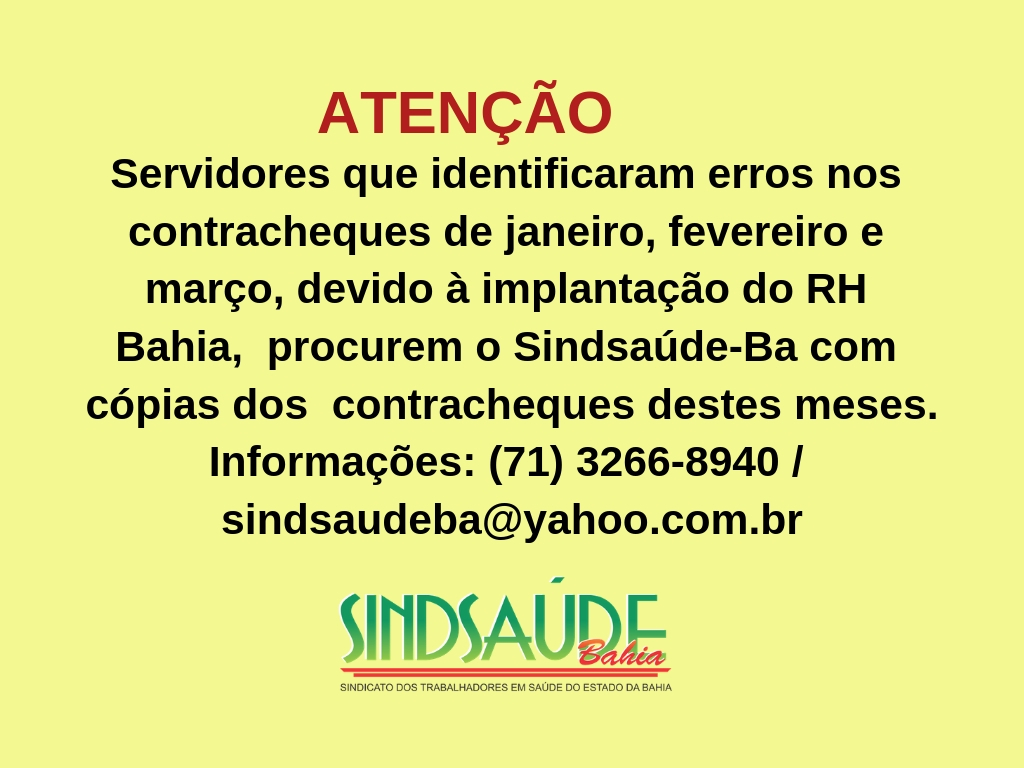 DESTAQUES Atenção servidores que identificaram erros nos contracheques 19/03/2019 por ascom Compartilhar: Share on: 0
