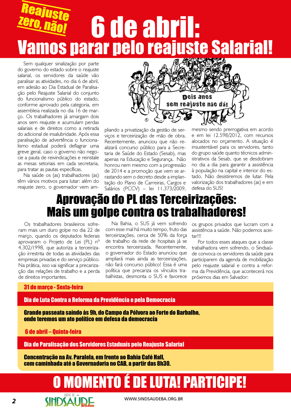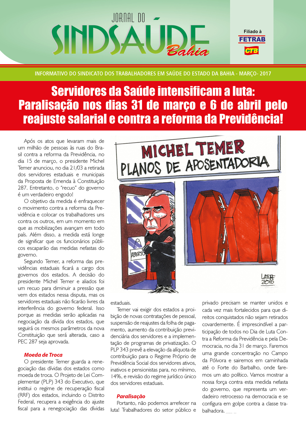 DESTAQUES Boletim: Paralisação dos servidores da saúde contra a reforma da Previdência e pelo reajuste dias 31/3 e 6/4! 27/03/2017 por ascom Compartilhar: Share on: 0