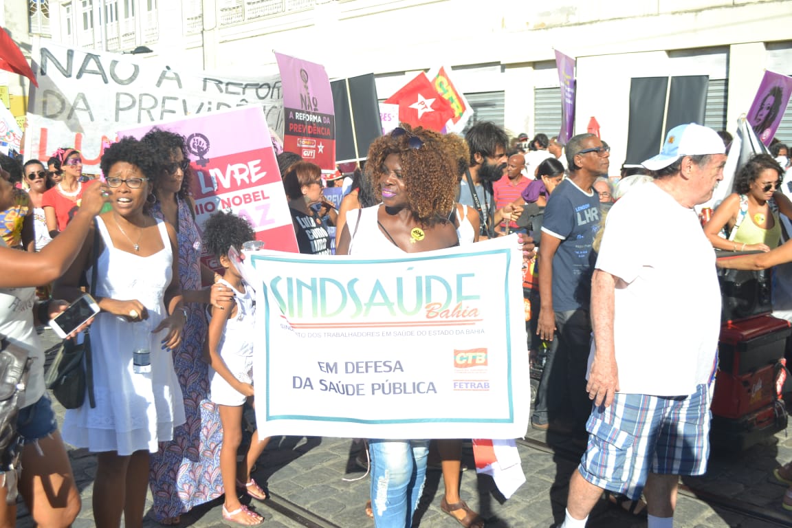 Uma multidão tomou às ruas do centro de Salvador na tradicional Caminhada do Dia Internacional da Mulher, no dia 8 de março, sexta-feira. A diretoria do Sindsaúde-Ba marcou presença no evento juntamente com centrais sindicais, sindicatos, movimentos sociais, organizações de mulheres, entidades e coletivos feministas em um dia de luta e protestos contra os retrocessos, a retirada de direitos e para contra a reforma da Previdência.