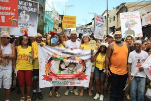 Cumprindo a tradição, o Sindsaúde-Ba e os servidores da saúde levaram às ruas durante a Mudança do Garcia, na segunda-feira de Carnaval (16) um protesto com irreverência pelo reajuste salarial, o pagamento da URV, dentre outras bandeiras de luta da categoria. A concentração aconteceu no, |Point do Arrumadinho, onde o sindicato promoveu uma divertida confraternização com feijoada.