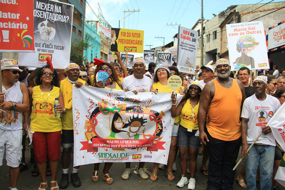 Com o tema “Não me leve a mal, queremos URV e reajuste salarial”, o Bloco da Saúde desfilou com um abadá padronizado, faixas e placas reivindicando os direitos dos trabalhadores. Os dirigentes da entidade e os associados criticaram o descaso do governo em relação à indefinição do índice de reajuste, com data base expirada no dia 1º de janeiro. O cortejo dos servidores da saúde participou do desfile juntamente com a CTB e demais entidades do conjunto do funcionalismo público do estado.
