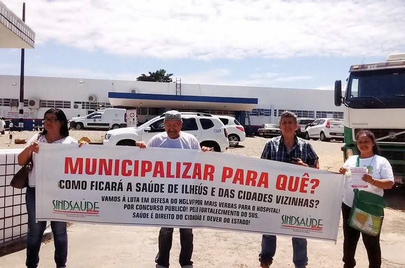 O Sindsaude-Ba solicitará audiência com o secretario da Saúde do Fábio Vilas-Boas para pedir esclarecimentos sobre o processo de municipalização do Hospital Luis Viana Filho, bem como o processo de terceirização do Hospital do Cacau, entendendo que o governo do Estado da Bahia está na contramão do fortalecimento do SUS quando inaugura mais uma hospital terceirizado e já completam nove anos sem realizar concurso publico, reforçando a precarização dos vínculos de trabalho e transferindo para a gestão privada (OS, OSCIPs e PPPs entre outras) a gestão de hospitais do Estado.
