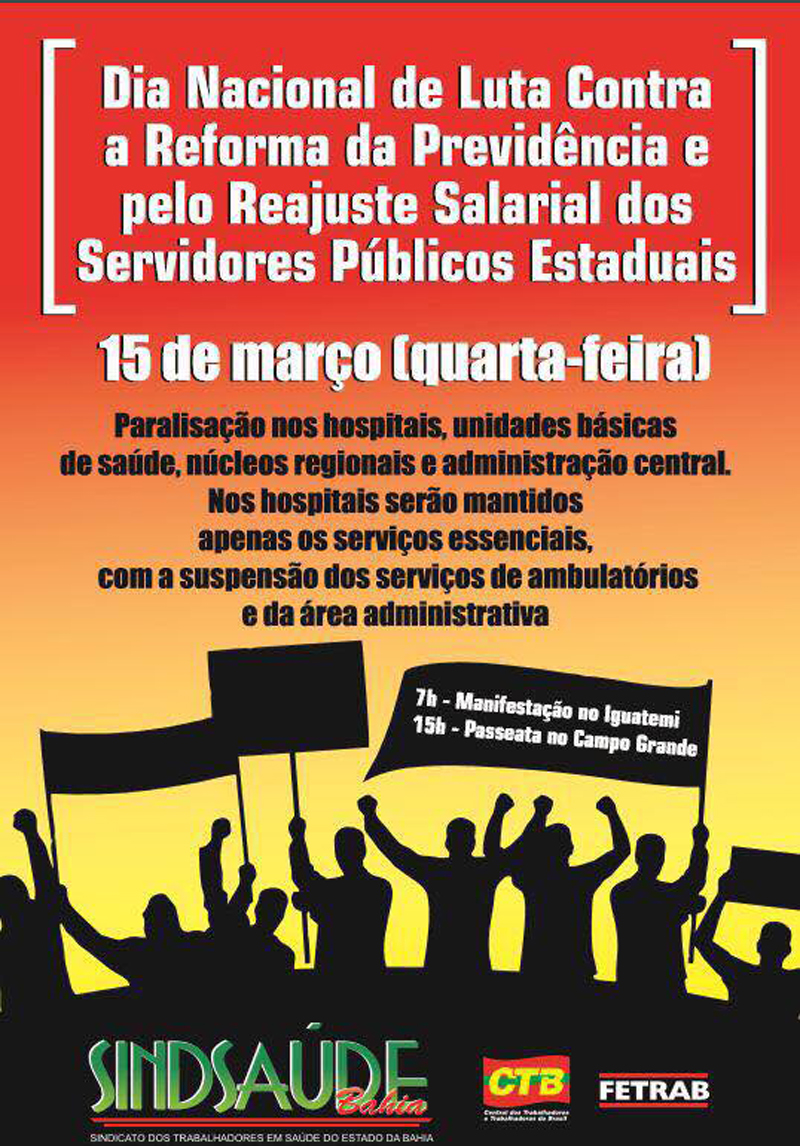 DESTAQUES Dia Nacional de Luta Contra a Reforma da Previdência e pelo Reajuste dos Servidores Públicos Estaduais 14/03/2017 por ascom Compartilhar: Share on: 0