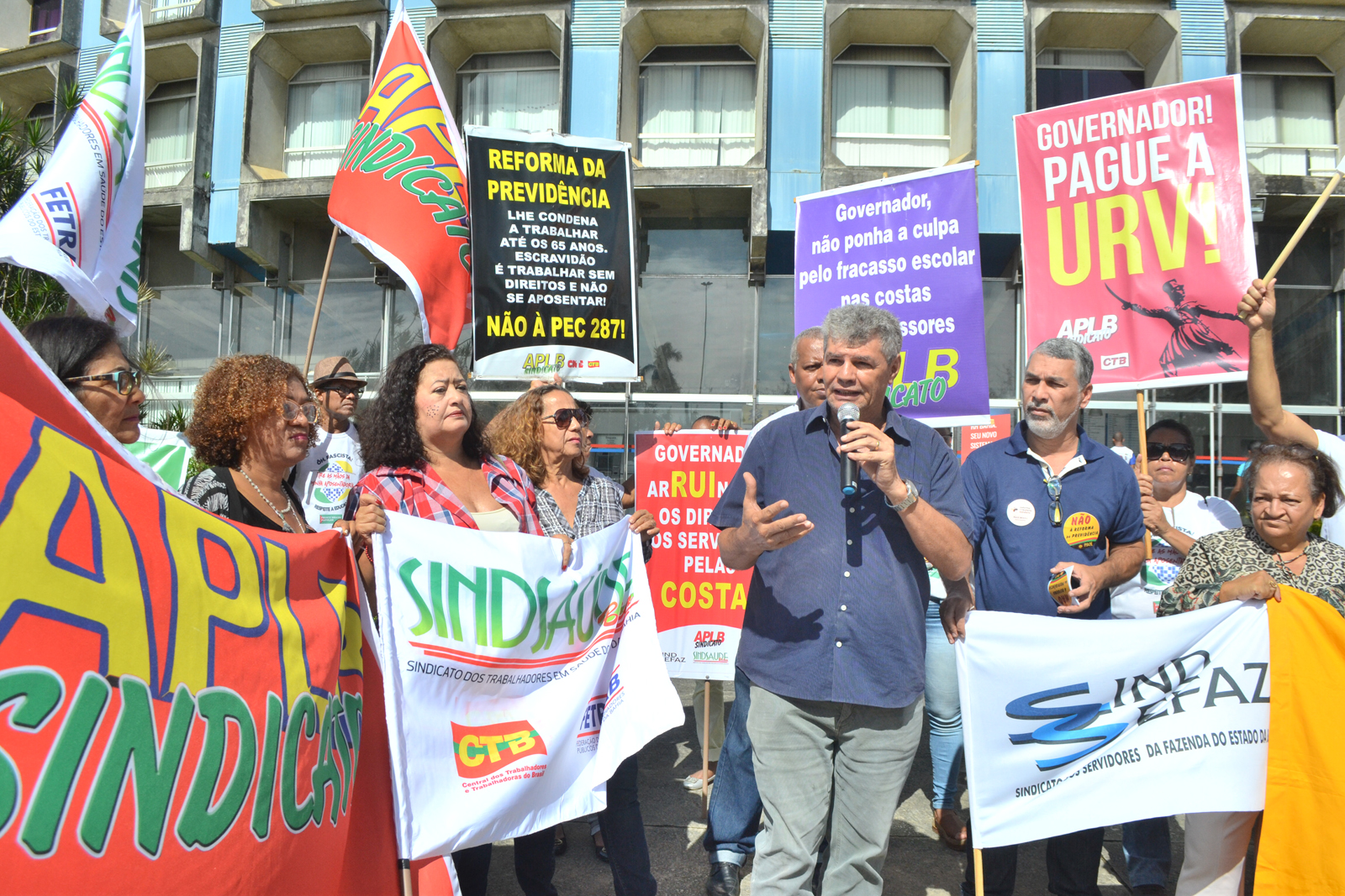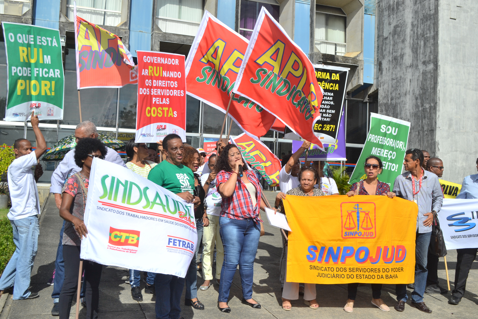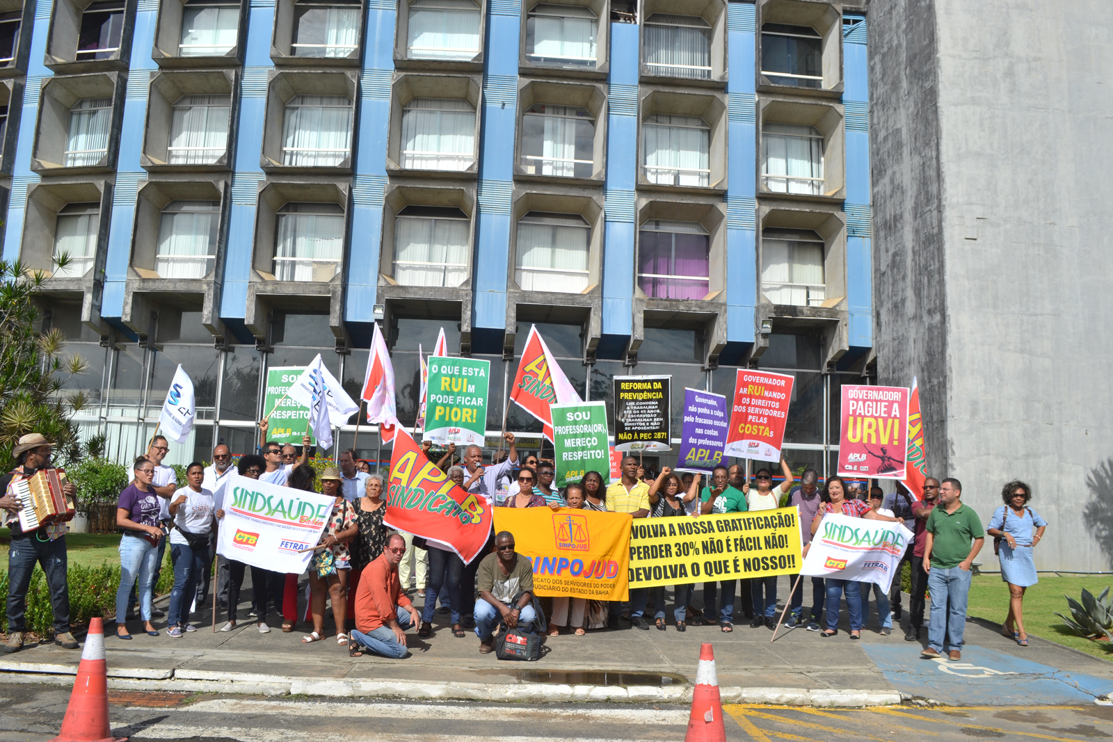 Sem reajuste salarial há quatro anos e com diversos direitos cortados pelo governo do estado, os trabalhadores pediram reabertura de diálogo com o governo para negociação em torno da pauta geral de reivindicações e das categorias. Além do reajuste salarial, as entidades protestaram pelo pagamento da URV, por melhorias no Planserv e no RH Bahia.