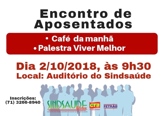 Encontro de aposentados, dia 2/10, na sede do Sindsaúde. Participe!