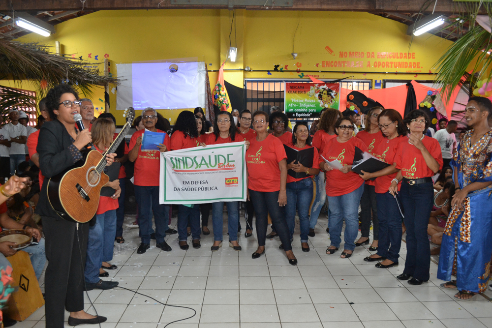 O Coral, formado por servidores da saúde ativos e aposentados, contou também com a participação de associados do Sindicato dos Servidores do Poder Judiciário do Estado da Bahia (Sinpojud). O grupo foi conduzido pela maestrina Paola Dalva Kaká, que ressaltou a importância do projeto do Coral do Sindaúde, idealizado pela presidente Ivanilda Brito.A diretora da entidade Inalba Fontenelle parabenizou os participantes da gincana e ressaltou a importância do tema debatido na gincana. “Queremos agradecer a oportunidade e também o que aprendemos com vocês hoje. Queremos dizer que este projeto do Coral do Sindsaúde é para mostrar que, nós trabalhadores, também queremos construir um mundo de justiça, de paz e de alegria. Nós acreditamos em vocês. Queremos uma sociedade justa e que todos tenham direitos para todas as classes e raças. Não queremos um país dividido. Não queremos que dividam nossa fé, nossa cor e nosso gênero. Queremos igualdade para o Brasil e para o mundo”, afirmou.