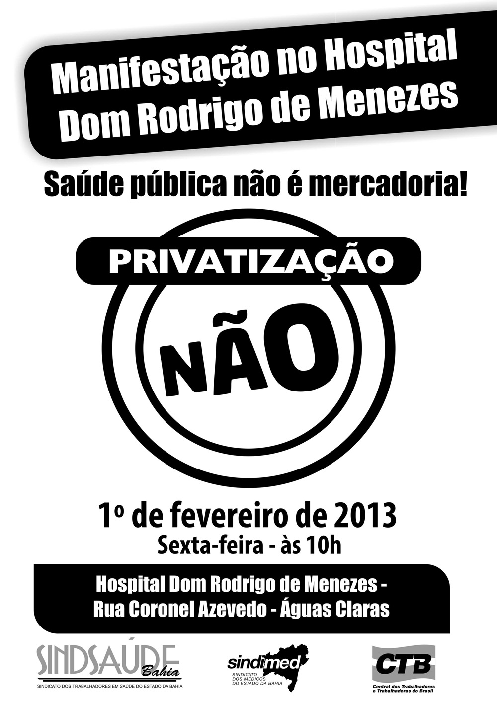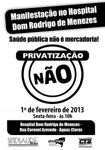 Funcionários e pacientes do Hospital Especializado Dom Rodrigo de Menezes (HEDRM), em Águas Claras, realizarão manifestação contra a desativação da unidade, na próxima sexta-feira (1º de fevereiro). O protesto será realizado em frente à unidade, às 10h. A manifestação acontece a três dias do fechamento oficial do HEDRM, anunciado pelo secretário da Saúde, Jorge Solla, para o próximo dia 4 de fevereiro.