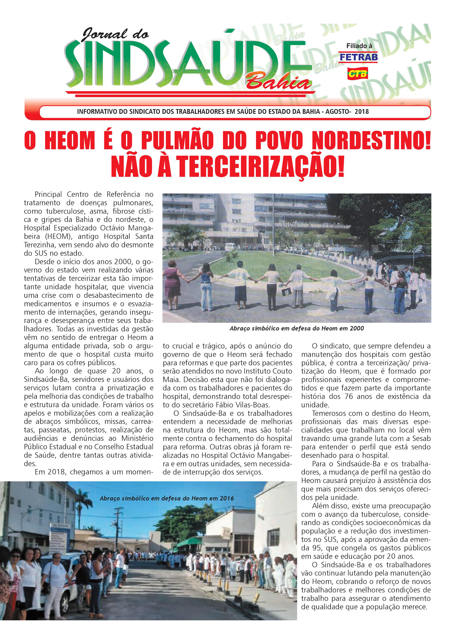 DESTAQUES OUTRAS NOTÍCIAS Informativo eletrônico: O Heom é o pulmão do povo nordestino!Não à terceirização! 28/08/2018 por ascom Compartilhar: Share on: 0