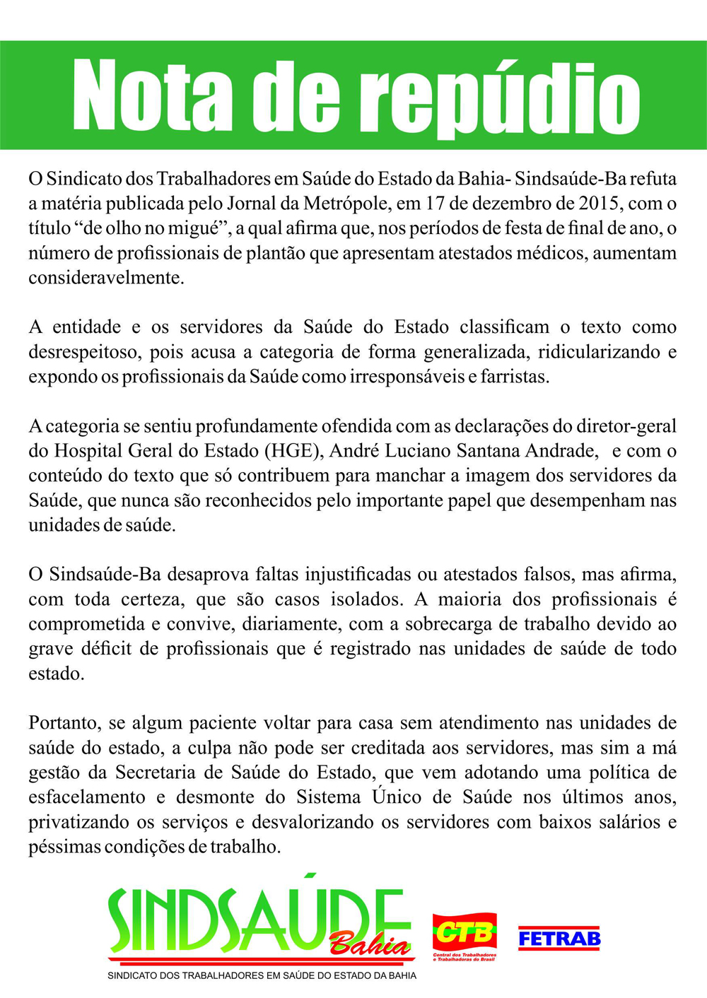 Nota de repúdio
