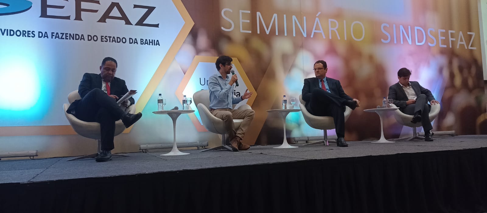 Em debate histórico, o SindSefaz reúne diversos sindicatos e entidades para o seminário O PROJETO DE RECONSTRUÇÃO DO BRASIL, que aconteceu nessa sexta (12), no Fiesta Bahia Hotel. O evento, que é promovido pelo Sindicato e organizado pelo economista Guilherme Melo, professor da Unicamp, teve a presenças de economistas importantes do país e reunirá 420 pessoas que garantiram sua vaga entre elas a presidente do SindsaúdeBahia.
