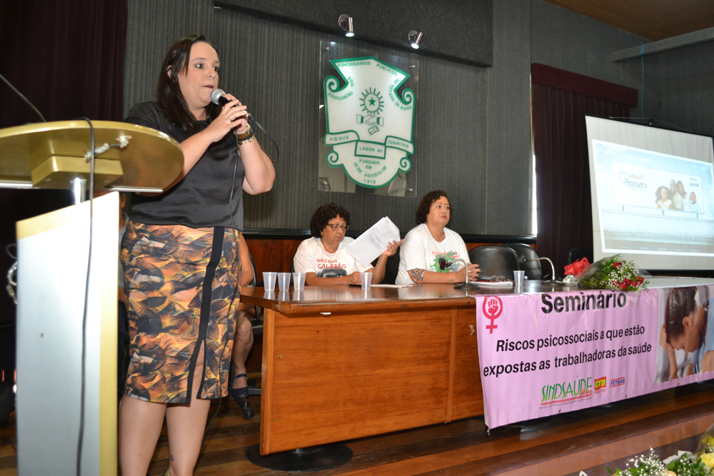 Ela destacou que as mulheres, que são maioria no serviço público de saúde, são expostas a riscos diários no ambiente de trabalho como sobrecarga de trabalho, ritmo acelerado, condições precárias e a situações de assédio moral. Todos estes fatores vêm desencadeando diversos problemas físicos e mentais como doenças ocupacionais, hipertensão, ansiedade, insônia e depressão.