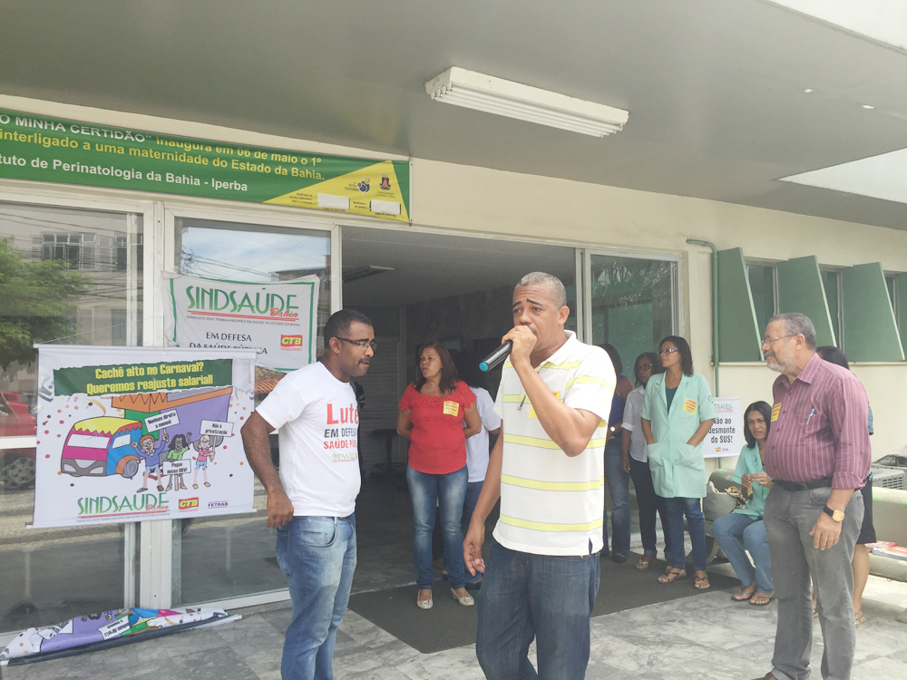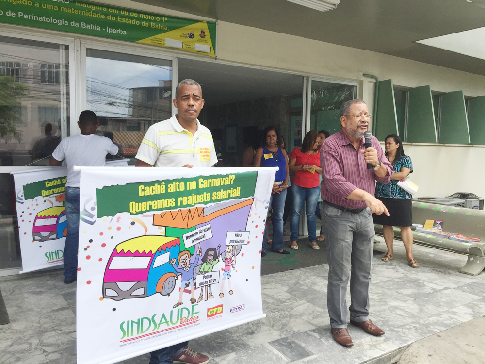 “Estamos aqui para denunciar à população o que o governo vem fazendo com a saúde pública. Não podemos permitir que os servidores continuem sendo tratados desta forma. O Iperba sempre foi e deverá continuar sendo referência como maternidade para todo estado e até no Brasil. No entanto o que estamos vendo é a tentativa de desmontar esta unidade para justificar o que o governo vem fazendo, através do secretário da saúde, Fábio Vilas-Boas, que é a entrega do patrimônio público à rede privada, através das terceirizações e privatizações”, denunciou o presidente do Sindsaúde-Ba, Silvio Roberto dos Anjos e Silva.