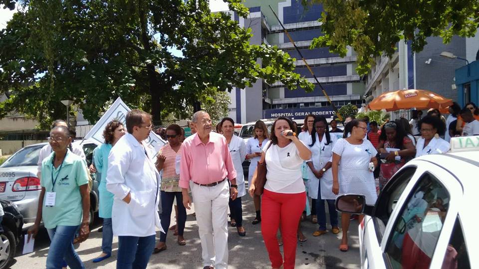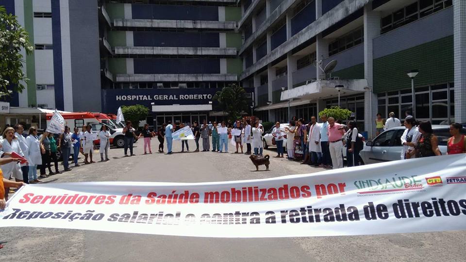 Em protesto contra a falta de resposta do governo estadual sobre a reposição salarial 2016 e retirada de direitos adquiridos, servidores do Hospital Geral Roberto Santos, liderados pelo Sindsaúde-Ba, paralisaram as atividades na manhã desta quarta-feira (9) e promoveram manifestação, com caminhada até a Rua Direta do Saboeiro, no Cabula. Em consequência, o trânsito na área ficou congestionado e os sindicalistas aproveitaram para chamar a atenção da população para a dificuldade de acesso ao hospital, em função da paralisação das obras e da retirada das linhas de ônibus que paravam em frente ao HGRS.