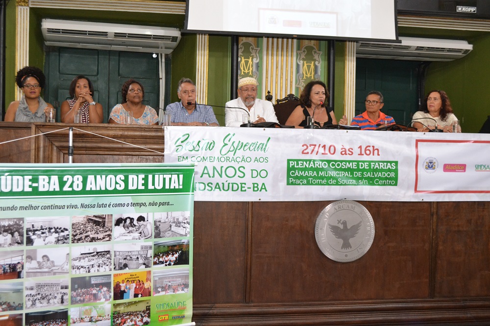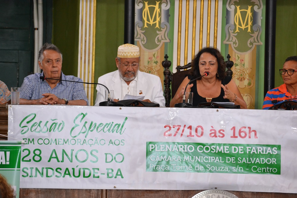 A política de desmonte do SUS, promovida pelo governo federal, e a falta de reajustes salariais tanto em nível estadual quanto municipal, foram apontadas pela vereadora Aladilce Souza (PCdoB) como algumas das atuais frentes de luta do Sindicato dos Trabalhadores em Saúde do Estado da Bahia (Sindsaúde-Ba). Para comemorar os 28 anos de atuação da entidade ela promoveu, na tarde desta sexta-feira (27), sessão especial no Plenário Cosme de Farias, da Câmara Municipal de Salvador.