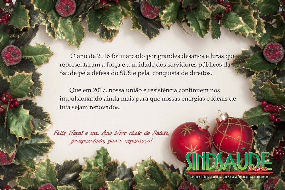 Sindsaúde-Ba deseja a todos Boas Festas