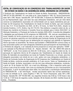 Sindsaúde Ba divulga edital de convocação para 12º Congresso