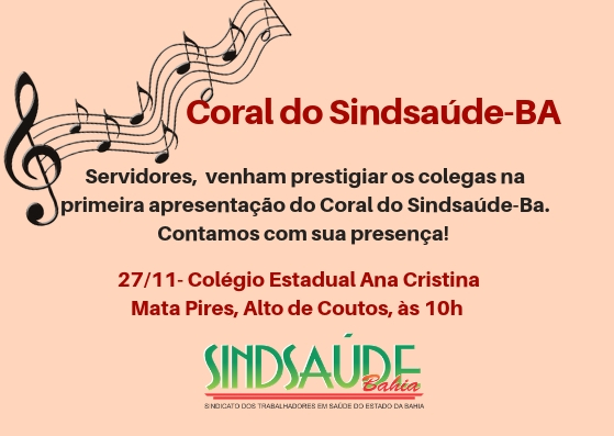 Coral do Sindsaúde-Ba: Primeira apresentação acontece nesta terça-feira (27/11)