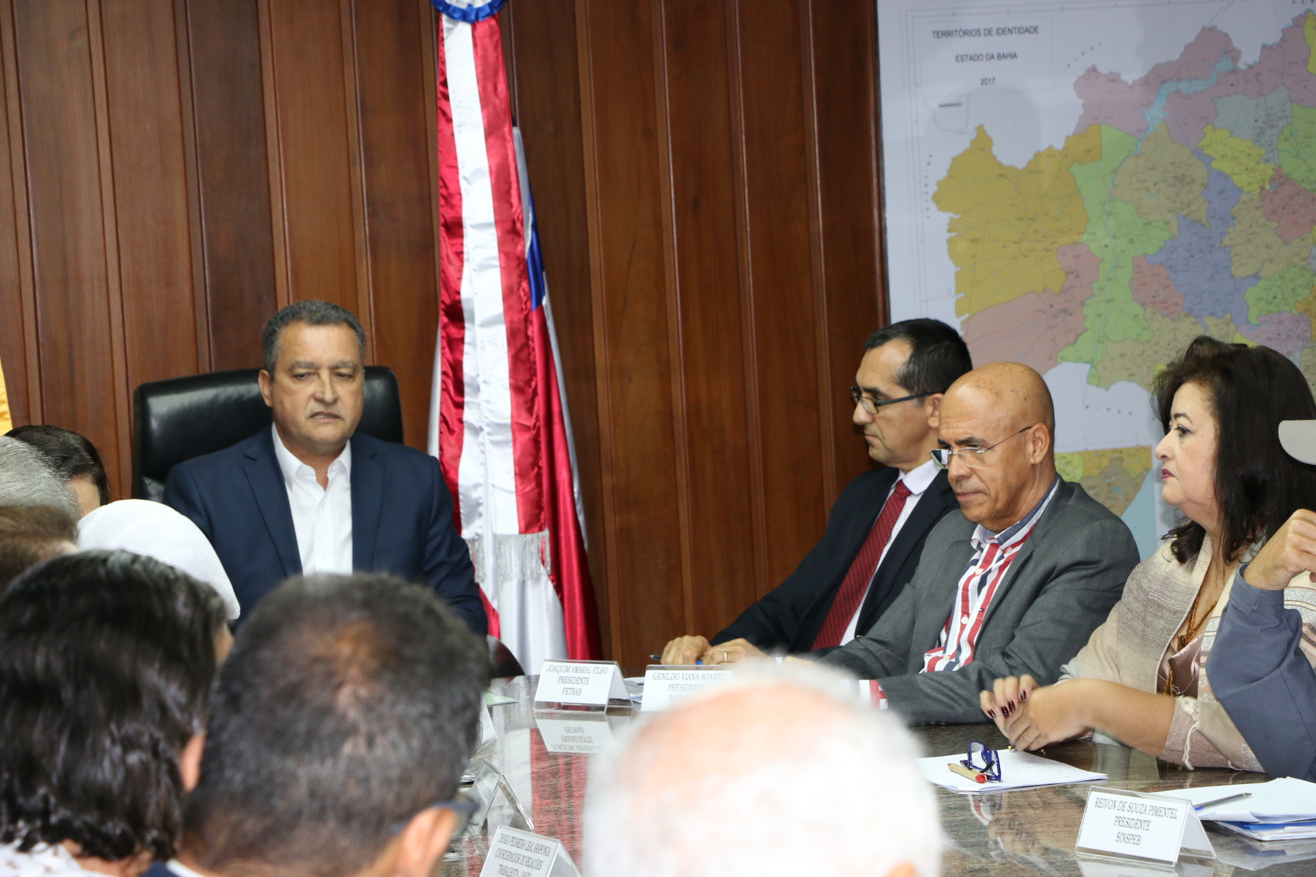 O mês de agosto chegou com uma boa notícia para milhares de trabalhadores do estado. Na última sexta-feira, 2 de agosto, o governador Rui Costa recebeu, na governadoria, a presidente do Sindsaúde Ivanilda Brito e representantes da Federação dos Trabalhadores Públicos do Estado da Bahia (Fetrab), da Associação dos Funcionários Públicos do Estado da Bahia (Afpeb), do Sindicato dos Servidores da Fazenda do Estado da Bahia (Sindsefaz), do Sindicato dos Servidores Penitenciários do Estado da Bahia (Sinspeb) e do Sindicato dos Policiais Civis do Estado da Bahia (Sindipoc).