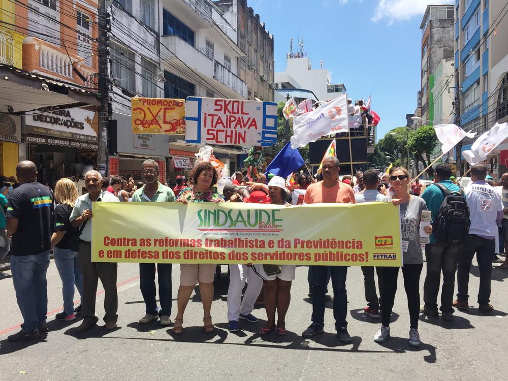 Com faixas, bandeiras e carros de som, a mobilização foi aumentando e chamando a atenção da população que mostrou apoio ao movimento. Na Bahia, o Sindsaúde e os trabalhadores também denunciaram a retirada de direitos dos servidores estaduais e a política perversa de desmonte do SUS e desvalorização do serviço público adotadas pelo governador Rui Costa.