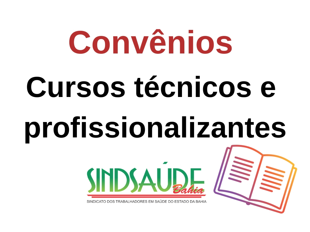 Associados do Sindsaúde-Ba e seus dependentes podem obter descontos especiais através de convênios firmados com diversas instituições de ensino e cursos profissionalizantes, que preparam profissionais de nível técnico para o mercado de trabalho. Entre as entidades conveniadas estão a Grau Técnico, o Instituto de Tecnologia da Bahia e a Microlins.