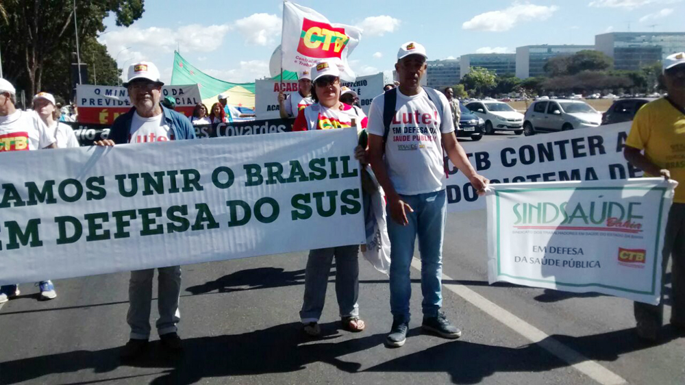 foto3A diretoria do Sindsaúde-Ba marcou presença na Marcha em Defesa da Saúde, da Seguridade e da Democracia, realizada no dia 6 de julho, na Esplanada dos Ministérios.   Coordenada pelo Conselho Nacional de Saúde (CNS), a marcha seguiu para um ato na frente do Congresso Nacional.