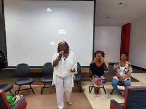 A diretora de Assuntos Jurídicos do Sindsaúde Bahia, Joana Evangelista, pontuou sobre as dificuldades que vive na unidade e também nas comunidades que frequenta. “Não é só aqui nas unidades hospitalares, mas nas comunidades também sofremos racismo e é preciso orientar a todos (as) da importância de ter conhecimento e saber entender os atos de racismo, às vezes muito velados, e a importância de serem denunciados. E principalmente, nas unidades de trabalho para que todos tenham os mesmos direitos”, pontuou Joana.