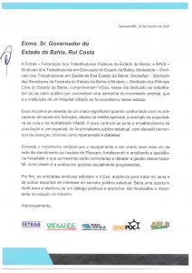 Assim como temos a certeza de que só através da luta coletiva podemos mudar nossa realidade, nós do SindSaúdeBahia, junto com FETRAB, SindSEFAZ, SindPOC e APLB Sindicato participaram do encontro com Governador, na quarta-feira, 28 de outubro, onde apresentaram a seguinte proposta em anexo abaixo.