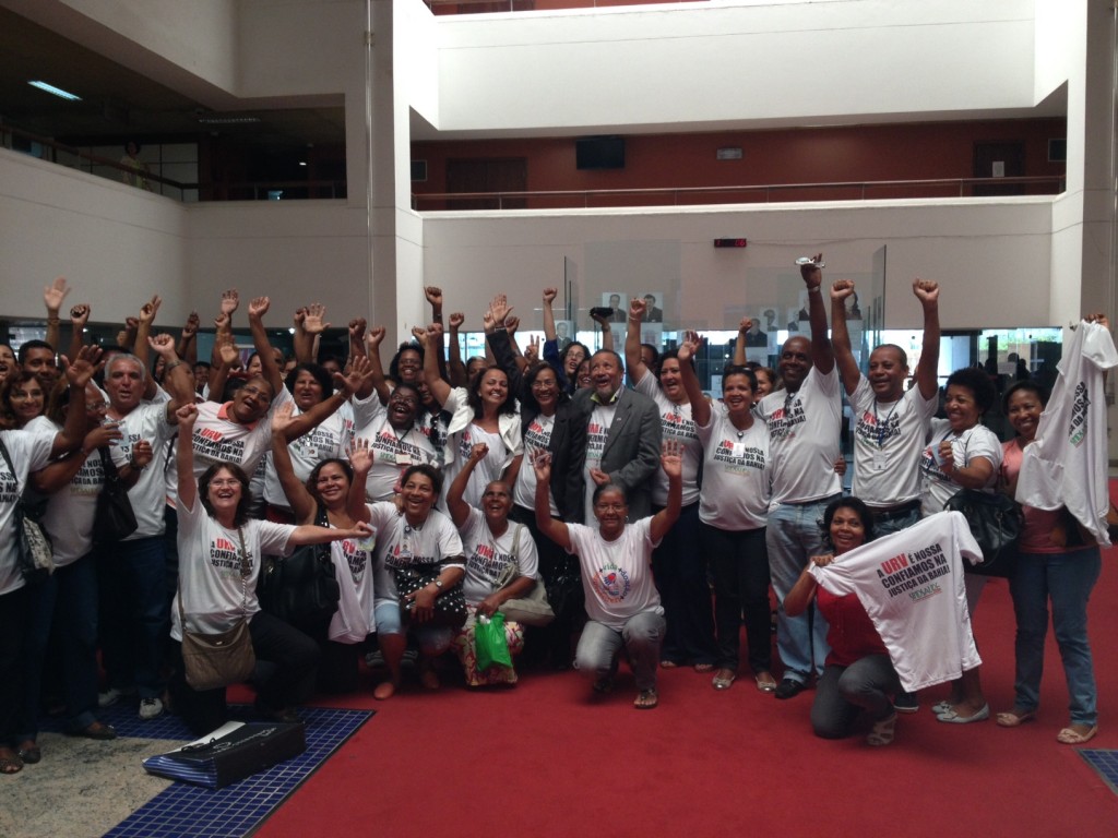 Mais uma grande vitória da luta dos servidores estaduais da Saúde pelo direito à URV. Os desembargadores do Tribunal de Justiça da Bahia, por maioria, decidiram extinguir o processo de autoria do governo do estado, mantendo a sentença que determina o pagamento da URV à categoria. O julgamento da ação rescisória foi na manhã desta quinta-feira (26) e o resultado foi comemorado pelos trabalhadores em frente ao TJ, no CAB, com foguetes e gritos de “A URV é nossa!”.