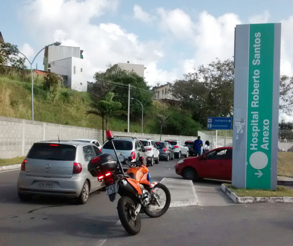 O fluxo de veículos no Hospital Roberto Santos aumentou consideravelmente nos últimos anos, após a construção do muro no entorno da unidade, que eliminou o acesso de linhas de ônibus até a entrada do HGRS, causando dificuldade de acesso e insegurança para os profissionais, sobretudo à noite.