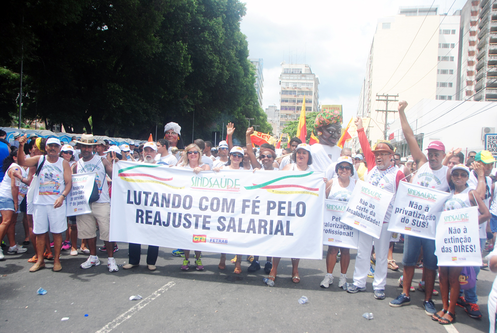 Festa com forte expressão de fé e cultura, a Lavagem do Bonfim tem espaço também para manifestação dos trabalhadores. Vestidos com a camisa com slogam “Senhor do Bonfim, tira o governador esse pacote de maldades. Reajuste já!”, os trabalhadores protestaram com irreverência, denunciando as medidas do governo do estado que vêm prejudicando e retirando direitos do funcionalismo público.