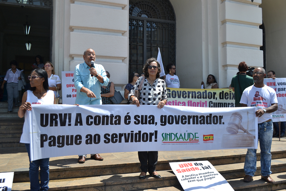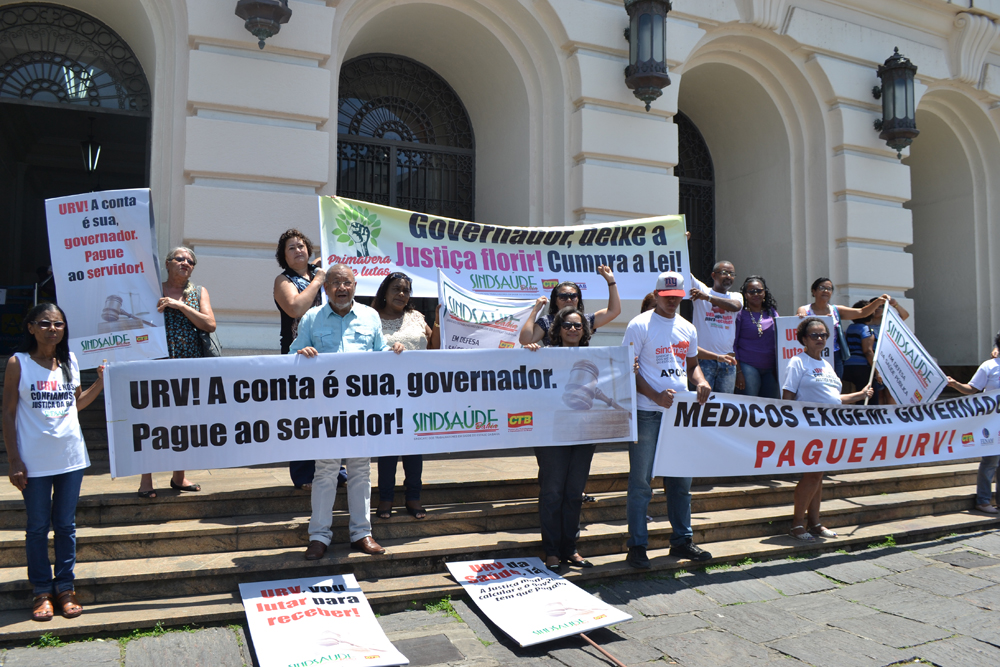 Passado três anos, desde que o Sindsaúde apresentou os cálculos da URV à Justiça, os servidores da Saúde, orientados pelo Sindsaúde , e o Sindimed realizaram uma manifestação em frente ao Fórum Ruy Barbosa, nesta quinta-feira (28/9), para demonstrar indignação com a protelação da ação de cobrança da URV por parte do Governo do Estado.