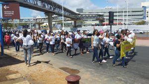 Com ato na portado no Shopping da Bahia (antigo Iguatemi), os servidores (as) concentraram para sair em carreata pela Av. Paralela, em direção à PGE (Procuradoria Geral do Estado) e pelas avenidas do Centro Administrativo da Bahia (CAB).