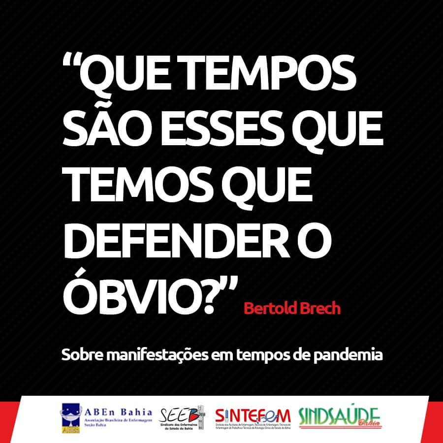 O Fórum Baiano de Enfermagem deliberou por não aderir a manifestações presenciais na Semana Brasileira de Enfermagem. Primeiro, parece muito contraditório que profissionais de saúde que pedem para a população não aglomerar promova aglomerações. E segundo, não nos parece sensato ser contra a um decreto do governo estadual que tem por base preservar vidas e assim proíbe aglomerações.