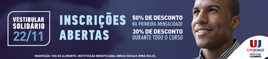 Atenção filiados ao Sindsaúde, a UniJorge promove no dia 22 de novembro seu Vestibular Solidário, uma ótima oportunidade para quem quer estudar na instituição, ajudando aqueles que precisam se qualificar. A inscrição será 1Kg de alimento não perecível, que será destinado para as Obras Sociais de Irmã Dulce. A doação deverá ser entregue no dia do vestibular.