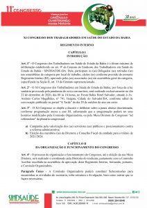 XI CONGRESSO DOS TRABALHADORES EM SAÚDE DO ESTADO DA BAHIA -REGIMENTO INTERNO